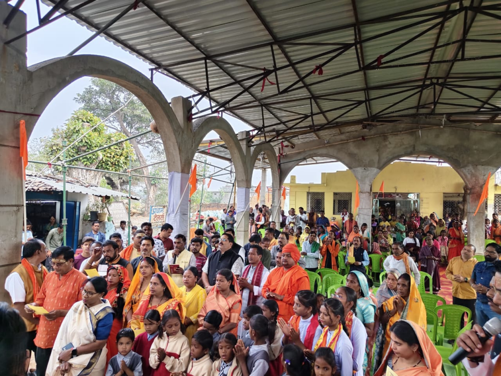 घरघोड़ा (गौरी शंकर गुप्ता)। विराट हिंदू सम्मेलन का भव्य एवं सफल आयोजन गायत्री मंदिर परिसर में मुख्य अतिथि आचार्य राकेश जी, विशिष्ट अतिथि राधे श्याम राठिया संसद, मुख्य वक्ता भय भंजन बेहरा, अध्यक्षता बद्रिका प्रसाद लहरें के उपस्थिति में संपन्न हुआ। सम्मेलन में बड़ी संख्या में श्रद्धालु, समाजसेवी एवं हिंदू संगठनों से जुड़े कार्यकर्ता उपस्थित रहे। सर्व प्रथम कार्यक्रम का शुभारंभ उपस्थित समस्त अतिथियों के द्वारा मां भारती, बाबा गुरुघासी दास जी , बिरसा मुण्डा जी के छाया चित्र पर तिलक, माल्यार्पणकर एवं दीप प्रज्वलित कर कार्यक्रम का शुभारंभ किया गया।