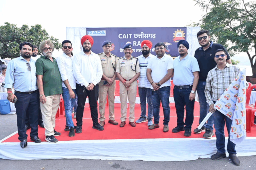 रायपुर। कन्फेडरेशन ऑफ ऑल इंडिया ट्रेडर्स (कैट) की युवा इकाई – युवा कैट एवं रायपुर ऑटोमोबाइल डीलर्स एसोसिएशन (राडा) द्वारा रायपुर शहर में सड़क सुरक्षा हेलमेट जागरूकता बाइक रैली का भव्य आयोजन किया गया। रैली का शुभारंभ कार्यक्रम के मुख्य अतिथि श्री लाल उम्मेद सिंह, श्री प्रशांत शुक्ला, श्री गुरजीत सिंग , श्री सतीश ठाकुर , राडा अध्यक्ष श्री रविन्द्र भसीन ने हरी झंडी दिखाकर रवाना किया। यह रैली शंकर नगर, पंडरी, फाफाडीह, स्टेशन रोड, एम.जी. रोड, शारदा चौक, जयस्तंभ चौक होते हुए कैट प्रदेश कार्यालय में संपन्न हुई। कार्यक्रम में मुख्य अतिथि वरिष्ठ पुलिस अधीक्षक रायपुर श्री लाल उम्मेद सिंह, विशेष अतिथि अतिरिक्त पुलिस अधीक्षक यातायात श्री प्रशांत शुक्ला, उप पुलिस अधीक्षक श्री गुरजीत सिंह एवं श्री सतीश ठाकुर उपस्थित रहे। मुख्य अतिथि श्री लाल उम्मेद सिंह ने कहा -“हेलमेट सचमुच जीवनरक्षक है। सड़क दुर्घटनाओं में सिर की चोटें ही मौत का सबसे बड़ा कारण हैं। यदि हर नागरिक हेलमेट पहनने का संकल्प ले तो हजारों जिंदगियां बचाई जा सकती हैं।”