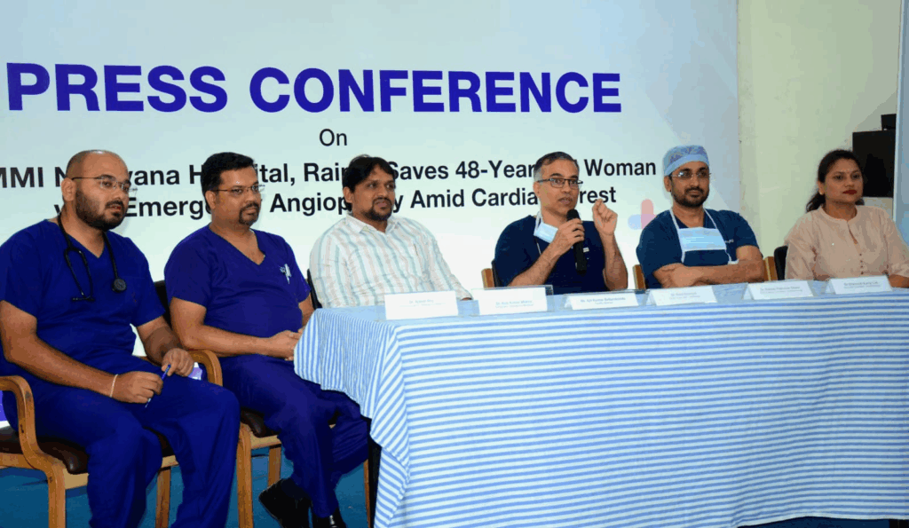 रायपुर। एक असाधारण चिकित्सा कौशल और टीमवर्क का परिचय देते हुए, एमएमआई नारायणा अस्पताल, रायपुर के सीनियर कार्डियोलॉजिस्ट डॉ सुनील गौनियाल एवं उनकी टीम ने 48 वर्षीय महिला की जान बचाई, जो हार्ट अटैक के बाद अचानक कार्डियक अरेस्ट का शिकार हो गई थीं। यह एक अत्यंत दुर्लभ और उच्च जोखिम वाली स्थिति थी, जिसमें त्वरित निर्णय और उन्नत हृदय चिकित्सा की आवश्यकता थी। महिला को किसी भी पूर्व जोखिम कारक के बिना एक घंटे से सीने में दर्द की शिकायत के साथ आपातकालीन विभाग में लाया गया था। प्रारंभिक जांच में तीव्र हार्ट अटैक की पुष्टि हुई। हालांकि, उपचार शुरू होने से पहले ही उन्हें कार्डियक अरेस्ट हो गया – एक गंभीर स्थिति जिसमें दिल की धड़कन बंद हो जाती है और शरीर में रक्त प्रवाह रुक जाता है। अस्पताल में डॉ सुनील गौनियाल एवं उनकी टीम ने तुरंत कार्डियोपल्मोनरी रिससिटेशन (CPR) शुरू किया, जिसमें निरंतर छाती पर दबाव और कई बार इलेक्ट्रिक शॉक देना शामिल था। 30 मिनट तक लगातार प्रयासों के बावजूद महिला की धड़कन वापस नहीं आई।
