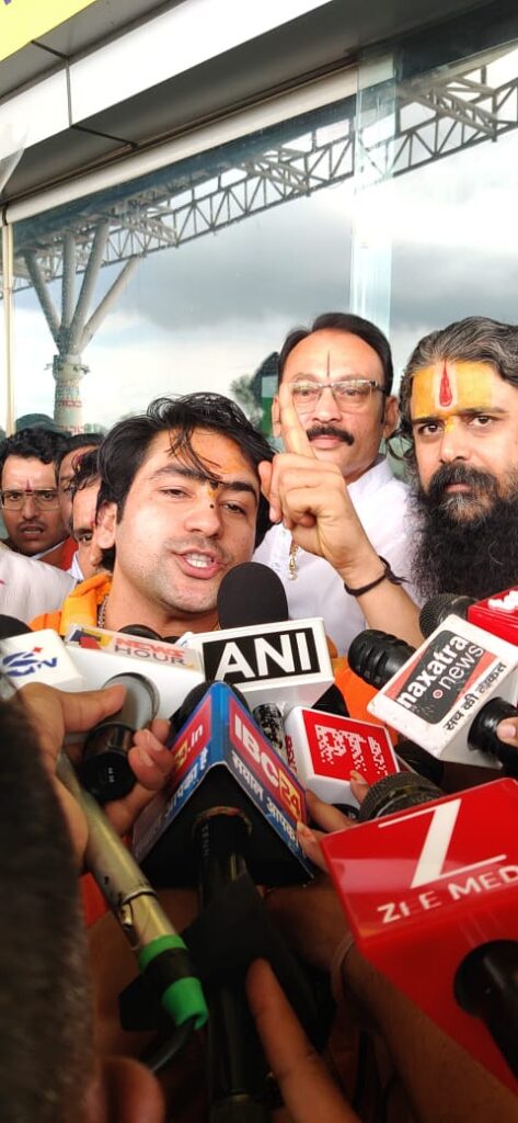 बागेश्वर धाम पीठाधीश्वर पं. धीरेंद्र कृष्ण शास्त्री का रायपुर एयरपोर्ट में भव्य स्वागत