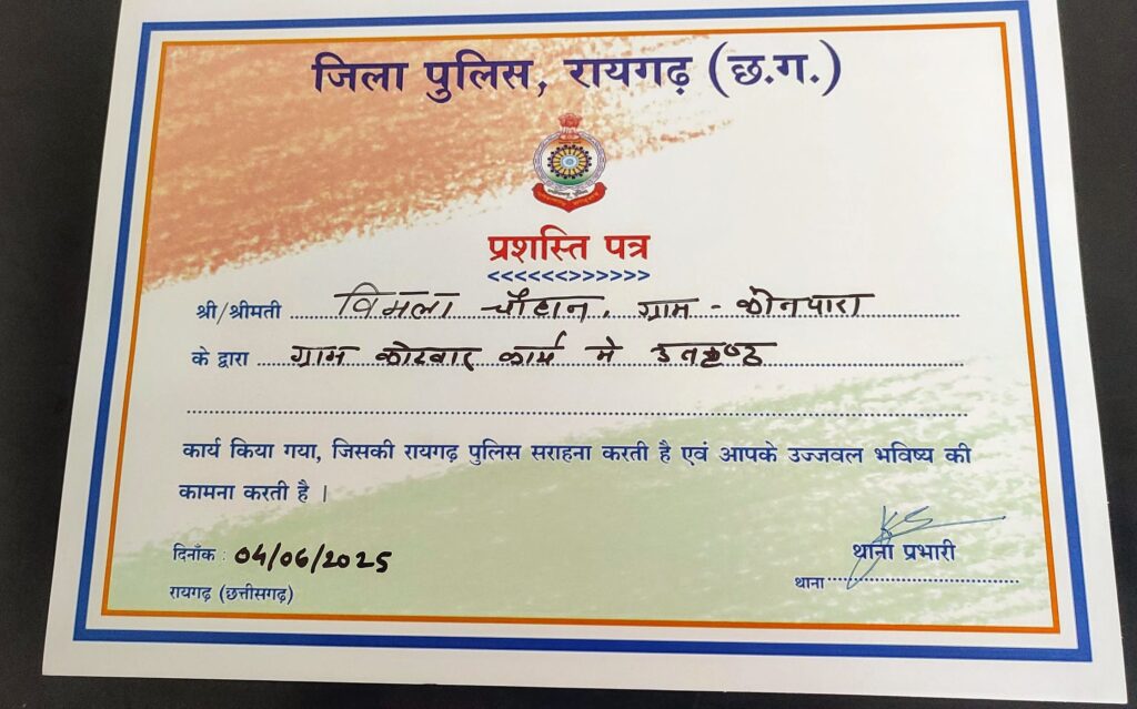 घरघोड़ा नवपदस्थ थाना प्रभारी कुमार गौरव साहू ने ग्राम कोटवारों के साथ की बैठक, उत्कृष्ट कार्य करने वाले को दिया प्रशस्ति पत्र