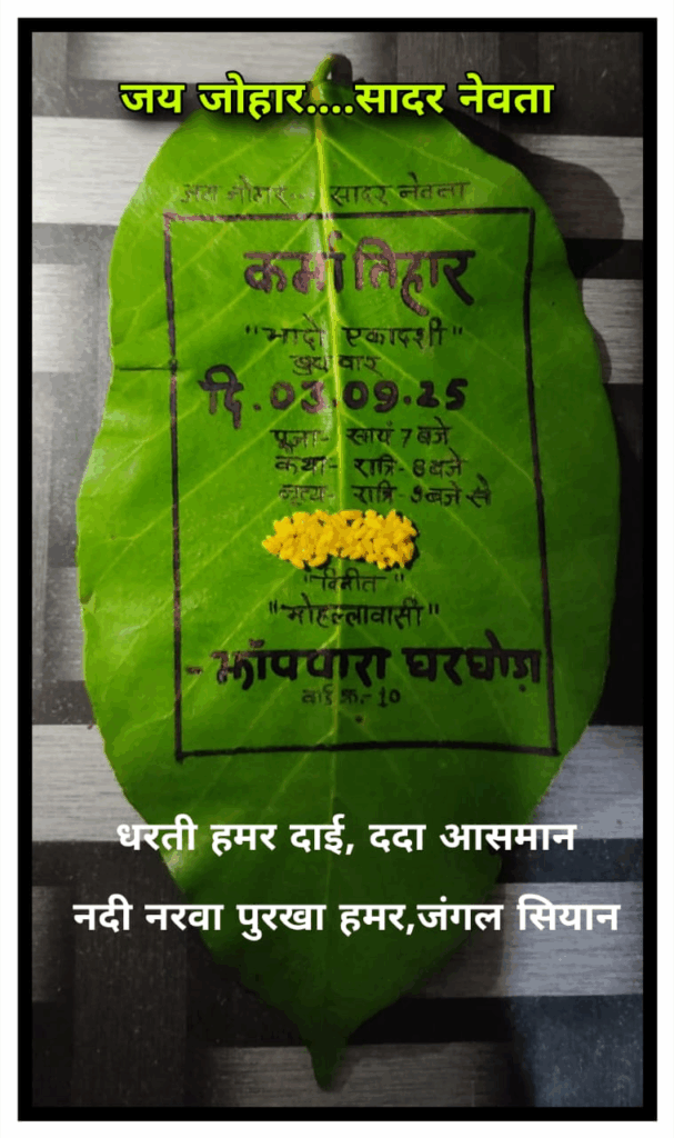 3 सितंबर को झापपारा घरघोड़ा में मनाया जायेगा कर्मा तिहार