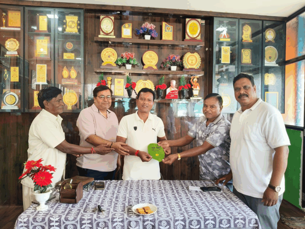 कर्मा तिहार पर कंवर जनजातिय समुदाय ने सासंद व विधायक को परंपरागत सराई पत्ते में दिया निमंत्रण पत्र