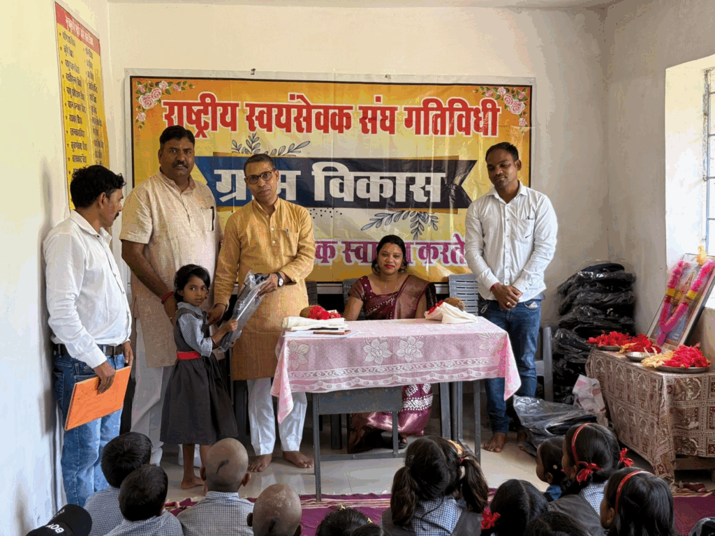 घरघोड़ा/बिलासपुर(गौरी शंकर गुप्ता)। आज राष्ट्रीय स्वयंसेवक संघ की ग्राम विकास गतिविधि द्वारा विश्व साक्षरता दिवस के अवसर पर ग्राम खपराखोल (बेना नगोई) में विशेष कार्यक्रम का आयोजन किया गया। इस अवसर पर शिक्षकों का सम्मान किया गया एवं बच्चों को स्कूल बैग वितरित किए गए।