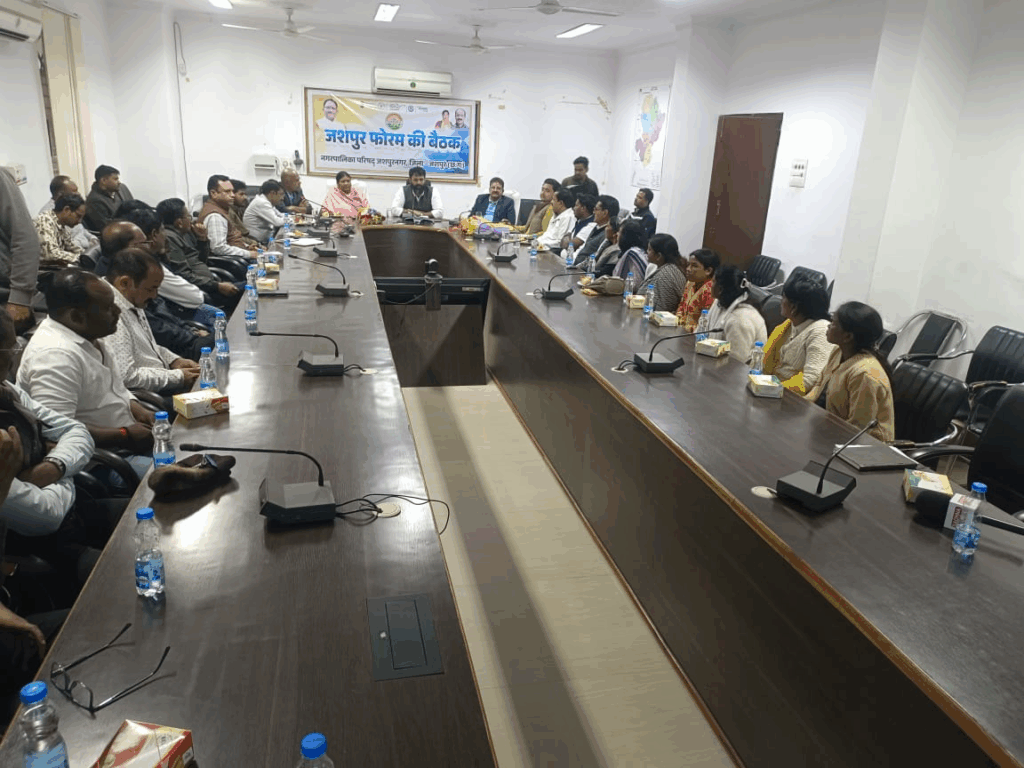 जशपुर नगर/ घरघोड़ा ( गौरी शंकर गुप्ता )। बुधवार को कलेक्टर कार्यालय के सभागार मे आयोजित हुए जशपुर फोरम की बैठक मे अव्यवस्थित सब्जी बाजार को लेकर शहरवासियों ने व्यवस्थित करने की मांग रखी। शहर वासियों का कहना था कि बस स्टैंड से लेकर साप्ताहिक बाजार तक सड़क के दोनों और सब्जी विक्रेताओं के बैठ जाने से जाम की स्थिति बन जाती है। जिससे आये दिन दुर्घटना हो रही है और जाम से लोग परेशान हैँ। फोरम की यह बैठक जशपुर की विधायक रायमुनी भगत की अध्यक्षता मे सम्पन्न हुई। इस बैठक में कलेक्टर रोहित व्यास के साथ नगर पालिका जशपुर के अध्यक्ष अरविन्द भगत, जिला पंचायत जशपुर के उपाध्यक्ष शौर्य प्रताप सिंह जूदेव, जशपुर के एसडीएम वीएस मस्के, नगर पालिका के सीएमओ योगेश्वर उपाध्याय के साथ पार्षद,नगरवासी शामिल थे।कलेक्टर रोहित व्यास ने बैठक की शुरुआत करते हुए कहा कि शहरवासियों की अपेक्षा और जरूरत के अनुरूप शहर के विकास की रुपरेखा तैयार करने के लिए जशपुर फोरम की परिकल्पना की गईं है। इसी साल जनवरी मे फोरम की पहली बैठक आयोजित की गईं थी। उन्होंने पहले बैठक मे लिए गए निर्णयों के क्रियान्वयन की जानकारी बैठक मे रखने का निर्देश सीएमओ उपाध्याय को दिया।