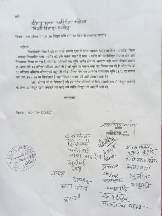 बरौद के ग्रामीणों ने बिजली समस्या को लेकर घरघोड़ा सहायक अभियंता को सौंपा ज्ञापन